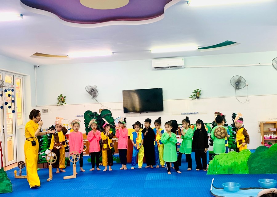 Hình ảnh các con cùng cô giáo diễn lại vở kịch