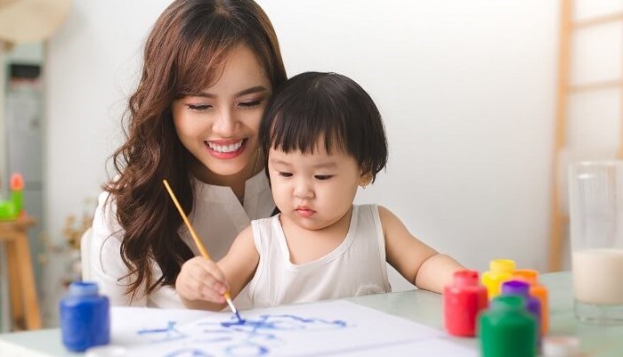 Đây là hoạt động mang tính sáng tạo và cảm thụ mỹ thuật, đóng vai trò quan trọng cho sự phát triển của bé sau này. Hoạt động nghệ thuật cùng con cũng giúp cha mẹ giải tỏa căng thẳng, quên đi những lo toan của cuộc sống thường nhật. Thay cho cách vẽ bằng bút màu hoặc cọ vẽ truyền thống, cha mẹ có thể gợi ý con sáng tạo bằng cách đưa ra chủ đề cho bé, hướng dẫn con vẽ tranh bằng rau củ quả, vẽ bằng đầu ngón tay, xé giấy hoặc hướng dẫn để bé tự làm một món đồ handmade đơn giản tặng ông bà.